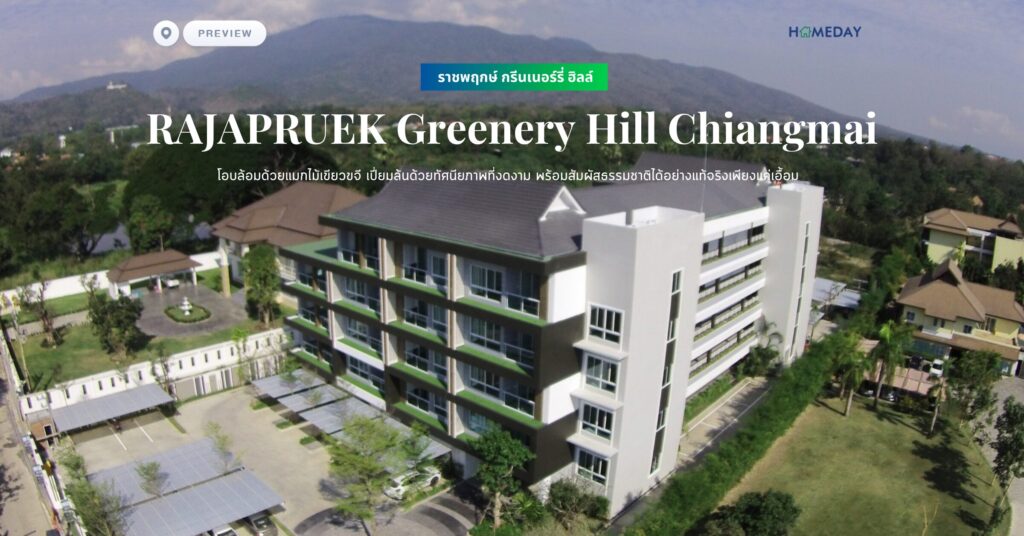 พรีวิว ราชพฤกษ์ กรีนเนอร์รี่ ฮิลล์ (RAJAPRUEK Greenery Hill Chiangmai) โอบล้อมด้วยแมกไม้เขียวขจี เปี่ยมล้นด้วยทัศนียภาพที่งดงาม พร้อมสัมผัสธรรมชาติได้อย่างแท้จริงเพียงแค่เอื้อม