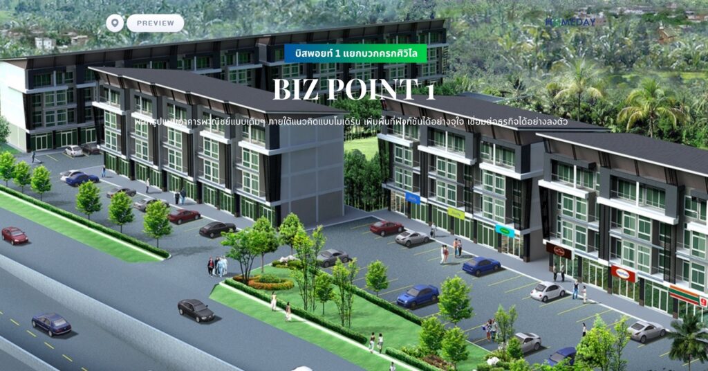 พรีวิว บิสพอยท์ 1 แยกบวกครกศิวิไล (BIZ POINT 1) พลิกรูปแบบอาคารพาณิชย์แบบเดิมๆ ภายใต้แนวคิดแบบโมเดิร์น เพิ่มพื้นที่ฟังก์ชันได้อย่างจุใจ เชื่อมต่อธุรกิจได้อย่างลงตัว