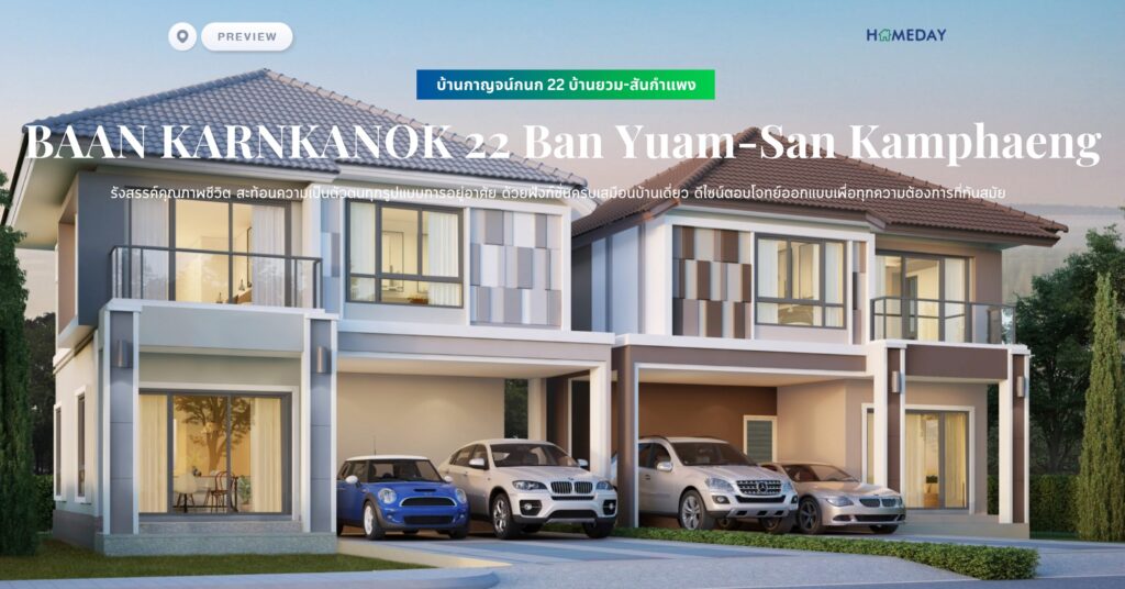 พรีวิว บ้านกาญจน์กนก 22 บ้านยวม-สันกำแพง (BAAN KARNKANOK 22 Ban Yuam-San Kamphaeng) รังสรรค์คุณภาพชีวิต สะท้อนความเป็นตัวตนทุกรูปแบบการอยู่อาศัย ด้วยฟังก์ชั่นครบเสมือนบ้านเดี่ยว ดีไซน์ตอบโจทย์ออกแบบเพื่อทุกความต้องการที่ทันสมัย