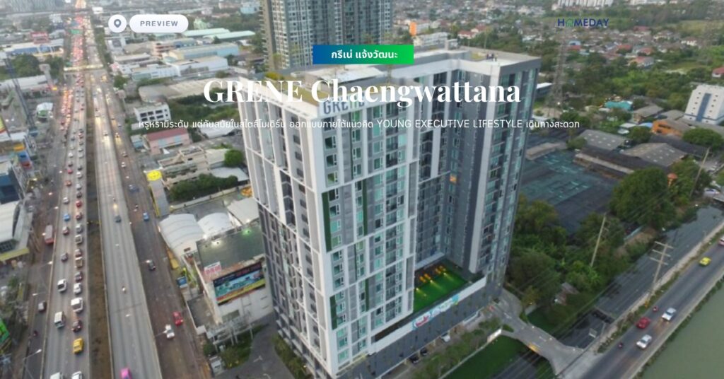 พรีวิว กรีเน่ แจ้งวัฒนะ (GRENE Chaengwattana) หรูหรามีระดับ แต่ทันสมัยในสไตล์โมเดิร์น ออกแบบภายใต้แนวคิด Young Executive Lifestyle เดินทางสะดวก