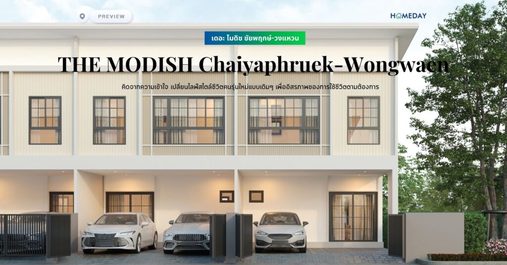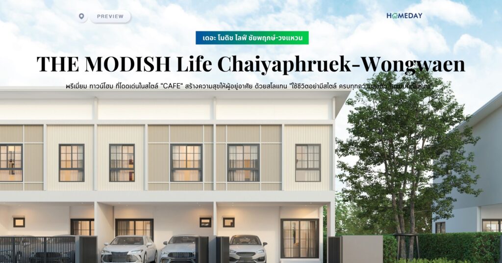 พรีวิว เดอะ โมดิช ไลฟ์ ชัยพฤกษ์-วงแหวน (THE MODISH Life Chaiyaphruek-Wongwaen) พรีเมี่ยม ทาวน์โฮม ที่โดดเด่นในสไตล์ “cafe” สร้างความสุขให้ผู้อยู่อาศัย ด้วยสโลแกน “ใช้ชีวิตอย่ามีสไตล์ ครบทุกความลงตัว ในแบบที่เป็นคุณ”