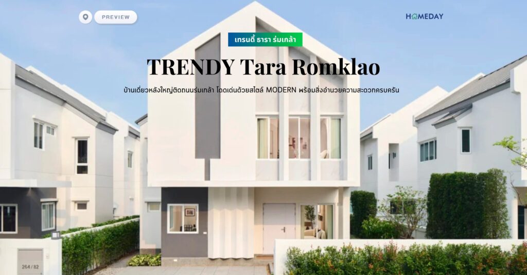 พรีวิว เทรนดี้ ธารา ร่มเกล้า (TRENDY Tara Romklao) บ้านเดี่ยวหลังใหญ่ติดถนนร่มเกล้า โดดเด่นด้วยสไตล์ Modern พร้อมสิ่งอำนวยความสะดวกครบครัน