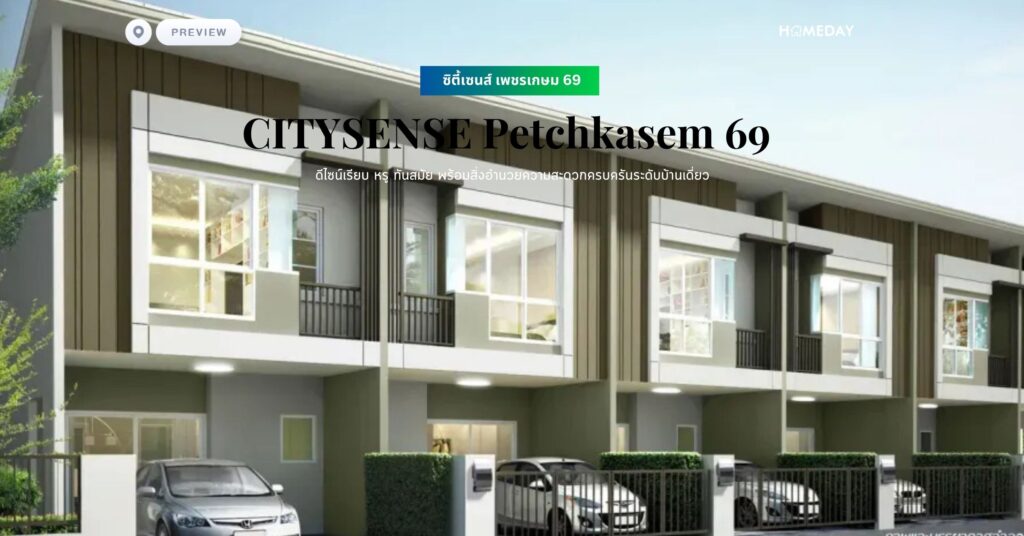 พรีวิว ซิตี้เซนส์ เพชรเกษม 69 (CITYSENSE Petchkasem 69) ดีไซน์เรียบ หรู ทันสมัย พร้อมสิ่งอำนวยความสะดวกครบครันระดับบ้านเดี่ยว