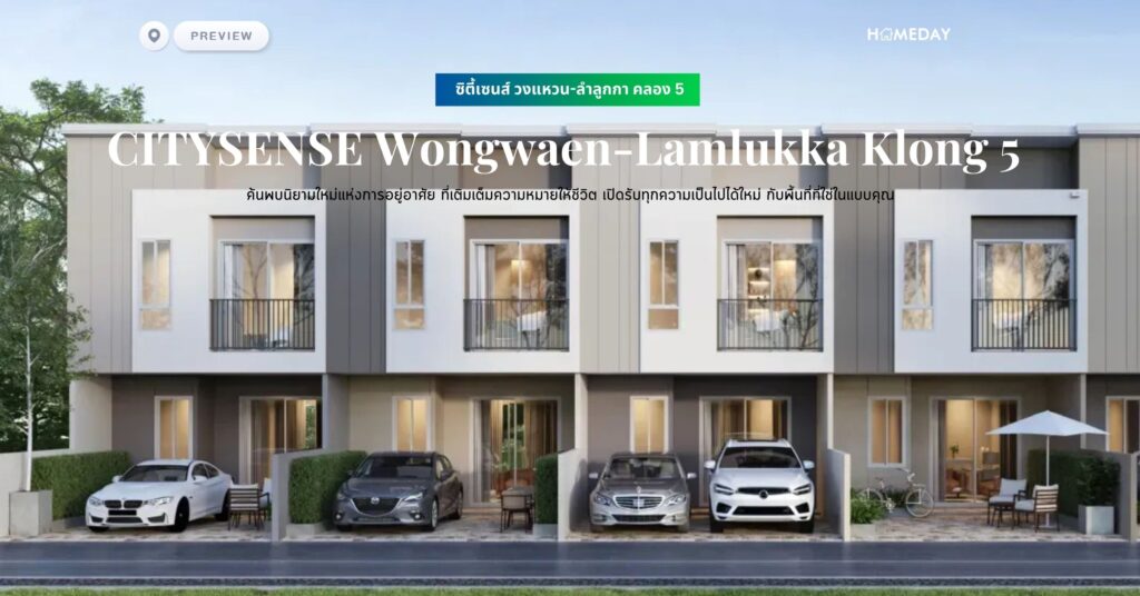 พรีวิว ซิตี้เซนส์ วงแหวน-ลำลูกกา คลอง 5 (CITYSENSE Wongwaen-Lamlukka Klong 5) ค้นพบนิยามใหม่แห่งการอยู่อาศัย ที่เติมเต็มความหมายให้ชีวิต เปิดรับทุกความเป็นไปได้ใหม่ กับพื้นที่ที่ใช่ในแบบคุณ