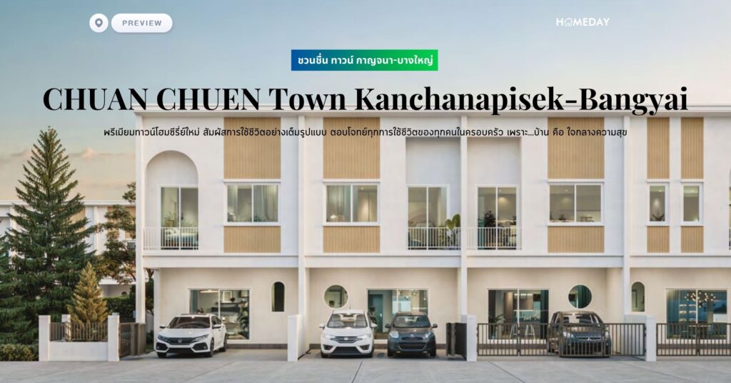 พรีวิว ชวนชื่น ทาวน์ กาญจนา-บางใหญ่ (CHUAN CHUEN Town Kanchanapisek-Bangyai) พรีเมียมทาวน์โฮมซีรี่ย์ใหม่ สัมผัสการใช้ชีวิตอย่างเต็มรูปแบบ ตอบโจทย์ทุกการใช้ชีวิตของทุกคนในครอบครัว เพราะ…บ้าน คือ ใจกลางความสุข