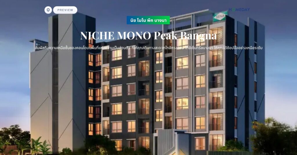 พรีวิว นิช โมโน พีค บางนา (NICHE MONO Peak Bangna) สัมผัสถึงความเหนือชั้นของคอนโดบนพื้นที่แห่งความเป็นส่วนตัว ที่ให้คุณเดินทางสะดวกใกล้ทางด่วน ใกล้เซ็นทรัลบางนา ให้คุณได้ช้อปปิ้งอย่างเหนือระดับ