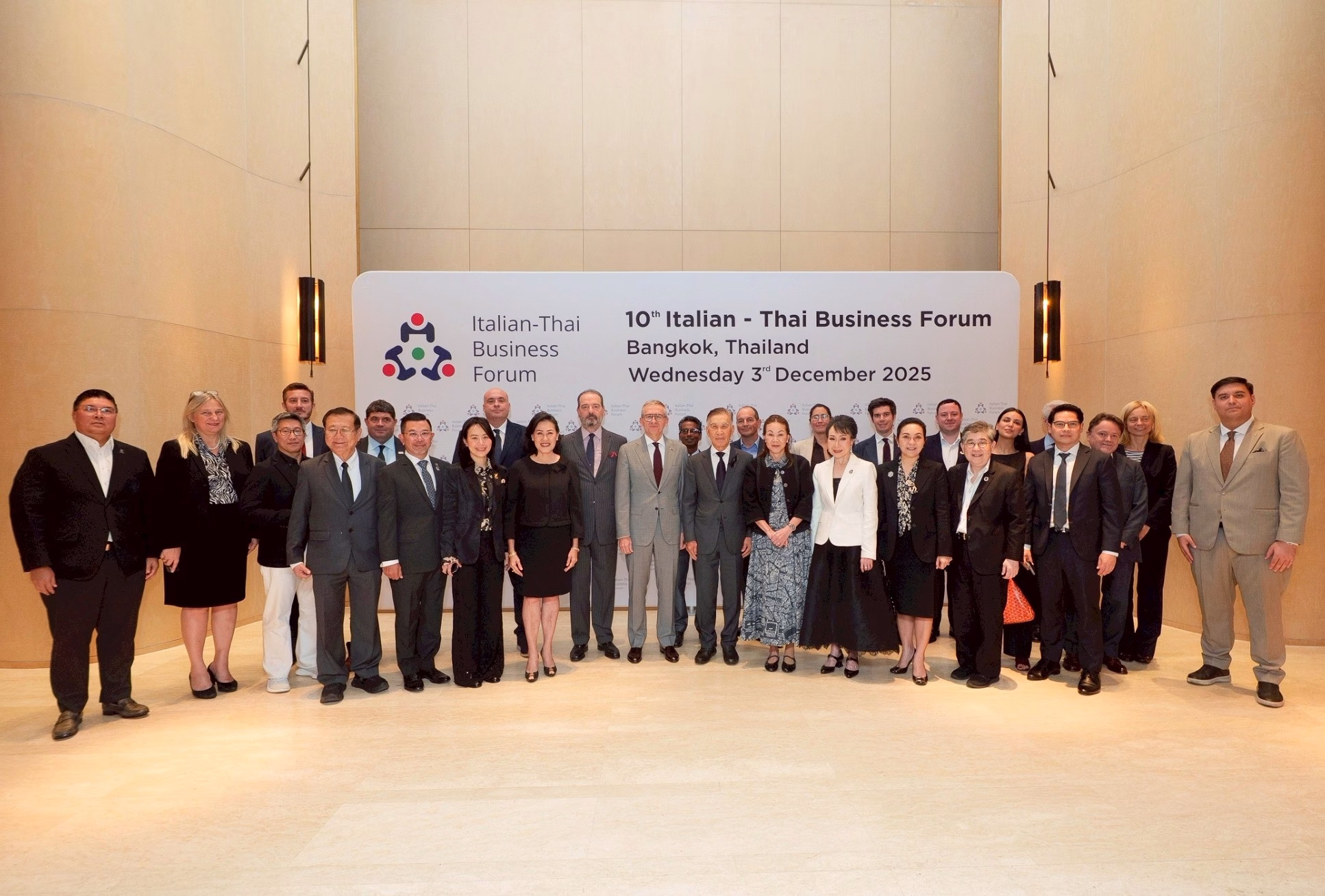 โดยในโอกาสครบรอบ 10 ปีของการประชุม อิตาเลียน–ไทย บิสซิเนส ฟอรั่ม (Italian–Thai Business Forum: ITBF) เวทีสำหรับการพบปะ แลกเปลี่ยนความคิด และส่งเสริมความสัมพันธ์ทางเศรษฐกิจทวิภาคีระหว่างภาคธุรกิจระดับแถวหน้าของไทยและอิตาลี ซึ่งจัดขึ้นเมื่อเร็วๆนี้ ณ โรงแรมพาร์คไฮแอท กรุงเทพฯ ดำเนินงานโดยหอการค้าไทย หอการค้าอิตาเลียน–ไทย และสถานเอกอัครราชทูตของทั้งสองประเทศ มีวัตถุประสงค์เพื่อยกระดับศักยภาพการค้าและการลงทุนระหว่างไทย–อิตาลี ตลอดจนเสริมสร้างเครือข่ายความร่วมมือในหลากหลายอุตสาหกรรมเป้าหมายให้มีความเข้มแข็งและยั่งยืน ซึ่งได้รวบรวมผู้บริหารระดับสูงและนักธุรกิจชั้นนำจากไทยและอิตาลีรวม 29 บริษัท ได้แก่ บริษัทจากไทย 19 บริษัท และจากอิตาลี 10 บริษัท ครอบคลุมอุตสาหกรรมสำคัญ อาทิ ยานยนต์ การธนาคาร โครงสร้างพื้นฐานและการขนส่ง อาหาร ประกันภัย เฟอร์นิเจอร์ ไลฟ์สไตล์ น้ำมันและก๊าซ พลังงานหมุนเวียน เครื่องจักร น้ำตาล ค้าปลีก ยาง ปิโตรเคมี และการท่องเที่ยว รวมทั้งมีหน่วยงานสำคัญจากภาครัฐเข้าร่วมแลกเปลี่ยนมุมมองด้านเศรษฐกิจและโอกาสการลงทุน
