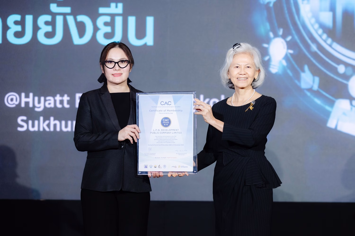 บริษัท แอล.พี.เอ็น.ดีเวลลอปเมนท์ จำกัด (มหาชน) โดย น.ส.ดารณี ฉัตรพิริยะพันธ์ ประธานเจ้าหน้าที่บริหาร บริษัท แอล.พี.เอ็น.ดีเวลลอปเมนท์ จำกัด (มหาชน) ขึ้นรับประกาศนียบัตรรับรองการเป็นสมาชิกแนวร่วมต่อต้านคอร์รัปชันของภาคเอกชนไทย (Thai Private Sector Collective Action Against Corruption (CAC) ในงาน CAC Certification Ceremony 2/2025 ภายใต้ชื่องาน “CAC Incentive Pool : ร่วมสร้างสิทธิประโยชน์แห่งความโปร่งใส เพื่อธุรกิจไทยยั่งยืน” เพื่อประกาศจุดยืนต่อต้านคอร์รัปชันทุกรูปแบบ  ต่อเนื่องเป็นครั้งที่ 3 จาก นางอรนุช  อภิศักดิ์ศิริกุล กรรมการให้การรับรองสมาชิกแนวร่วมต่อต้านคอร์รัปชันของภาคเอกชนไทย โดยประกาศนียบัตรที่ได้ในครั้งนี้สะท้อนให้เห็นถึงความมุ่งมั่นขององค์กร ในการดำเนินธุรกิจบนพื้นฐานของความโปร่งใส เน้นธรรมาภิบาล ความรับผิดชอบ ความยืดหยุ่นในการปรับตัว และการให้คุณค่ากับผู้คนทุกกลุ่ม ไม่ว่าจะเป็นพนักงาน คู่ค้า ลูกค้า หรือชุมชน โดยเป้าหมายเดียวกันคือ สร้างการเติบโตที่ยั่งยืนให้กับผู้เกี่ยวข้อทุกภาคส่วน ณ โรงแรมไฮแอท รีเจนซี่ กรุงเทพฯ เมื่อเร็วๆ นี้