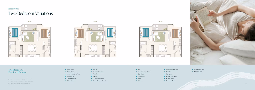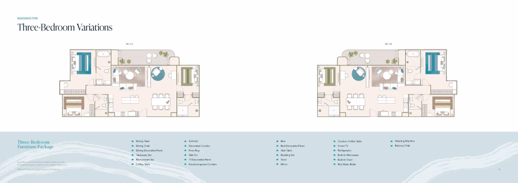 ห้องยอดนิยมสำหรับกลุ่มครอบครัว มีพื้นที่ Living Area กว้างขึ้น และระเบียงขนาดใหญ่สำหรับนั่งพักผ่อน - 3 Bedrooms ขนาด 129 ตร.ม.