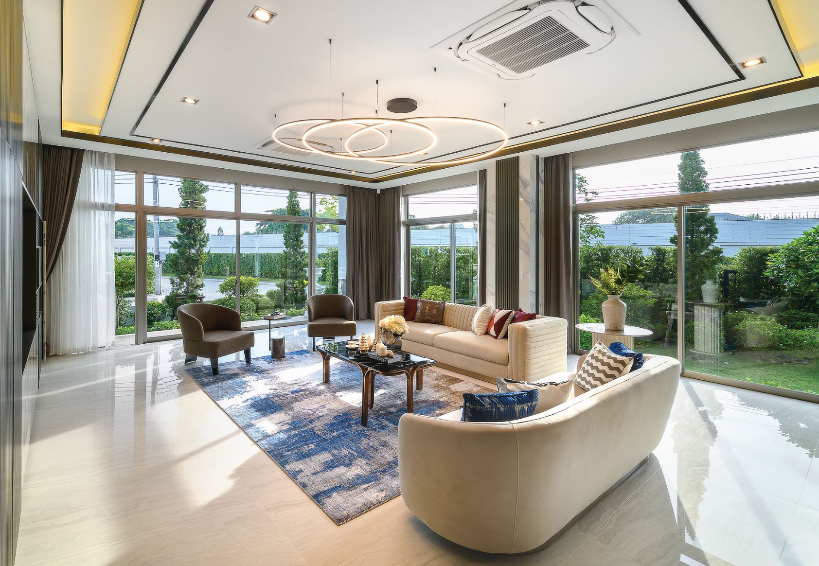 พื้นที่ใช้สอย 453 ตร.ม. 5 ห้องนอน 6 ห้องน้ำ 1 ห้องนั่งเล่น 4 ที่จอดรถ มาพร้อมห้องรับประทานอาหาร ห้องครัว ห้องสวดมนต์ และห้องแม่บ้าน