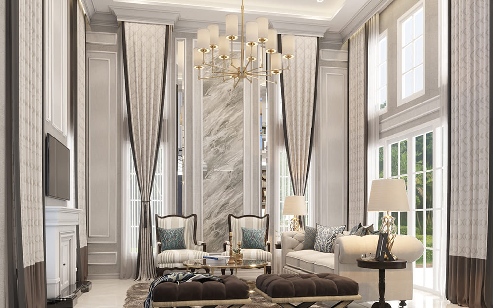 พื้นที่ใช้สอย : 303 ตร.ม. กว้าง 17.50 เมตร ยาว 13.90 เมตร เนื้อที่ : 100-137 ตร.ว. 4 ห้องนอน, 4 ห้องน้ำ , 1 ห้องรับแขก , 1 ห้องรับประทานอาหาร , 1 Pantry , 1 ครัวไทย , 6 ที่จอดรถ, 1 ห้องแม่บ้าน, โถงต้อนรับโอ่อ่า, Double Volume บริเวณรับประทานอาหาร, Walk-in Closet ทุกห้องนอน