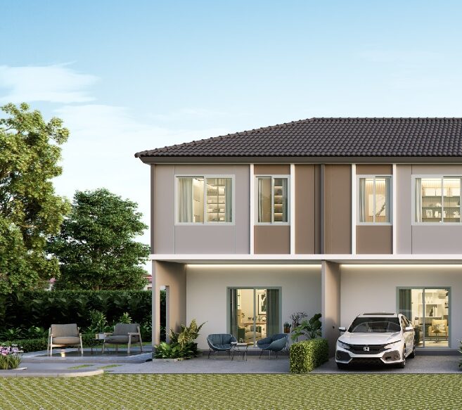 พื้นที่ใช้สอยประมาณ 110 ตร.ม. หน้ากว้าง 5.7 เมตร 3 ห้องนอน 2 ห้องน้ำ 2 ที่จอดรถ