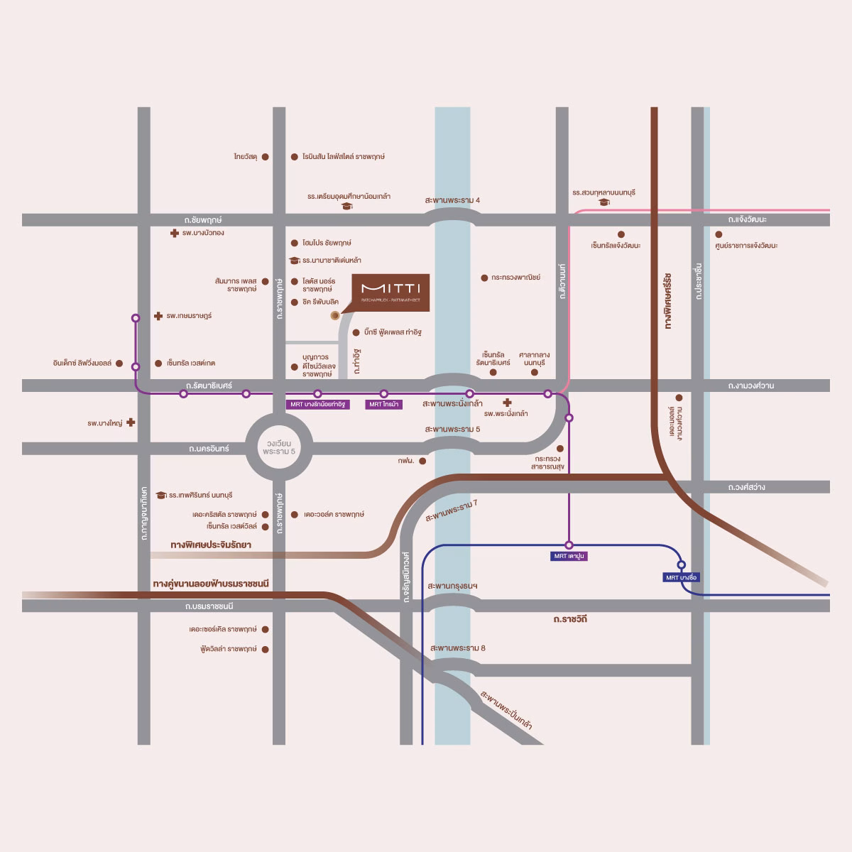 ในด้านทำเล โครงการตั้งอยู่บนทำเลศักยภาพ ใกล้รถไฟฟ้า MRT สายสีม่วง สถานีไทรม้า และสถานีบางรักน้อย–ท่าอิฐ ใช้เวลาเดินทางเพียง 8 นาที* และเชื่อมต่อทางพิเศษศรีรัชได้ภายใน 12 นาที* ใกล้ ห้างสรรพสินค้า โรงพยาบาล และสถานศึกษาชั้นนำ รองรับการใช้ชีวิตอย่างครบวงจร