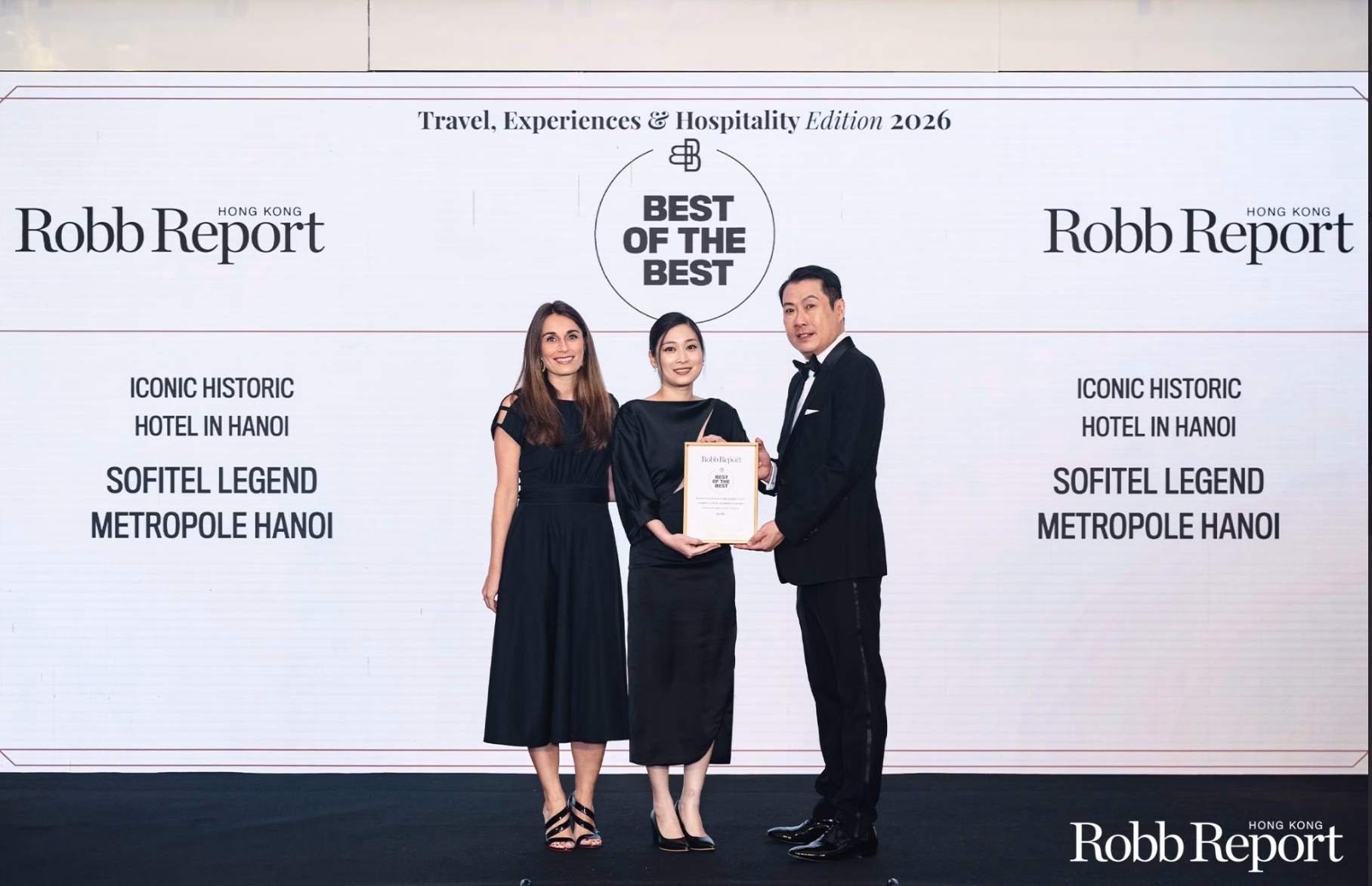 อิทธิพลอันยาวนานของ Sofitel Legend Metropole Hanoi ยังได้รับการยอมรับจาก Robb Report Hong Kong สื่อชั้นนำด้านไลฟ์สไตล์ลักชูรีระดับโลก ในฉบับ “Best of the Best 2026: Travel, Experiences & Hospitality Edition” ซึ่งจัดงานประกาศรางวัลและกาล่าดินเนอร์ขึ้นอย่างยิ่งใหญ่ในเดือนตุลาคมที่ผ่านมา โรงแรมในตำนานแห่งนี้ได้รับเกียรติให้คว้ารางวัล “Iconic Historic Hotel in Hanoi” มาครอง